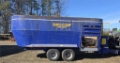 Tilan varavaunun virkaa ajanut apevaunu etsii uutta kotia. Molemmat purkuluukut keulalla, jotka hydraulisesti käytettäviä. Pohjalevyssä ei juuri kulumisen merkkejä, mutta ruuvit vaativat hieman rakkautta. Terät on, mutta ei olisi haitaksi jos vaihtaisi uudet, malja muuten ehjä ja siisti, mutta pientä maalivikaa alkaa olla ylhäällä jo havaittavissa. Tässä kapasiteettia isommankin karjan ruokintaan.