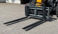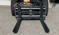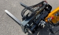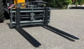 Palettengabel (für Frontlader u. Kompaktteleskoplader) mit hydraulischer Zinkenverstellung, Zinkenlänge: 1200 mm, Tragkraft: 2500 kg, Euro-Aufnahme. Auf Wunsch sind auch andere Aufnahmen möglich. Abbildung ist mit zusätzlichem hydraulischen Seitenverschub (Aufpreis EUR 300,-).