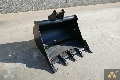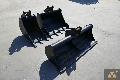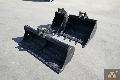 Set of 3 New mini excavator buckets, 460mm wide bucket with teeth, 920mm wide bucket with teeth, 1520mm wide cleaning bucket with bolt-on cutting edge, pin diameter 45mm, stick width 155mm, pin centers 260mm.