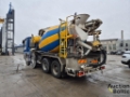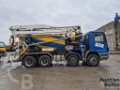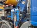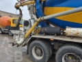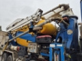 Truck with concrete mixer and concrete pump is in working condition.