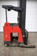 Electric, 3-Stage, Side Shift, 4500# Capacity Narrow Aisle Single Reach Truck, 143" Stowed / 321" Max Lift, Reconditioned 36 Volt Battery, charger, Key Hours - 715, Deadman Hours - 110, Lift Hours - 20, Travel Distance - 250, Aux Hours - 1650