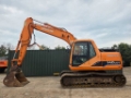 Daewoo Doosan Solar 140LCV, comes with NEW track chains, NEW sprockets, NEW idler, NEW top and bottom rollers!! Machine has had a lot of money spent on it, 6 cylinder turbo manual engine 95hp, original hydraulic pump, piped for breaker, 4ft GEITH digging bucket, cabin guards included, no cracks or welds, Air conditioning cabin, fully glazed, 1 owner driver machine not hire, top top condition excavator, ready to go straight to work, working video available