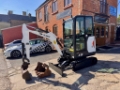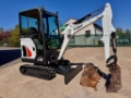 2017 Bobcat E19 cab excavator with quick hitch & 3 buckets, heater, radio, keyless start.