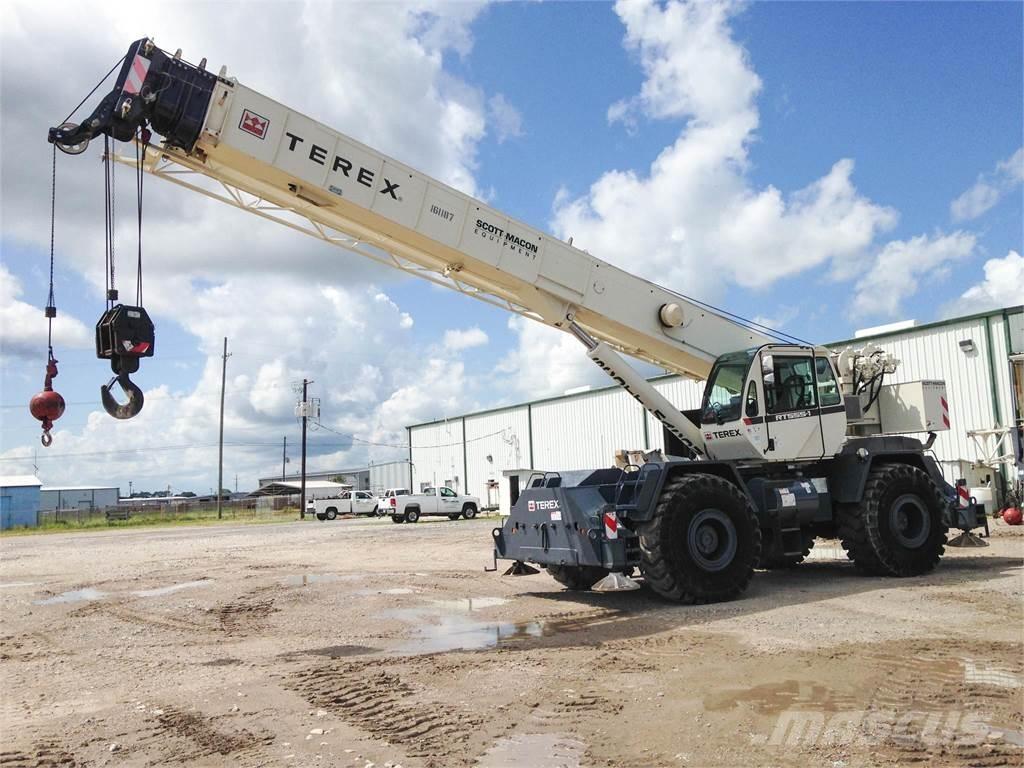 Description: Used 55-ton capacity 2012 Terex RT555-1 rough terrain crane available for sale or rent,. Comes equipped with standard features including but not limited to: 110' max boom, 57' max jib, 7-ton capacity overhaul ball with hook latch, hook block, and more. Contact us for additional details and pricing.