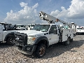 Ford V8 6.7 L Diesel 300 hp Engine, 2011 US EPA Label, Requires Diesel Exhaust Fluid, Automatic Transmission, 7000 lb Front Axle, 12000 lb Rears, 16500 lb GVWR, 225/70R19.5, Spring Suspension, 141 in Wheelbase, Center Mounted, One-Person Articulating-Telescopic Boom, Utility Body, 12 ft 2 in x 96 in Bed