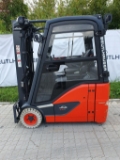 Endkundenbemerkung: Die Angabe der Betriebsstunden kann aufgrund von Zwischenvermietungen vom tatsächlichen Wert abweichen. Aktuelle Betriebsstunden erhalten Sie jederzeit gerne auf Nachfrage. Die Auslieferung des FFZ erfolgt mit gültiger FEM-Prüfung und technischer Durchsicht in unserer Werkstatt., Sonderausstattung: Doppelpedal, Gabelträger ISS 980mm, Dach- Heck- Frontscheibe, Alutüren mit Seitenscheiben, 180° Batteriewechsel, Wisch- Waschanlage f. Dachscheibe, Kunstledersitz schwenkbar, Heizung, Innenspiegel panorama, Arbeitsscheinwerfer vorne & hinten, RFID, Steckdose 12V, ISS, Kontrollzugang ink. Linde Connect System, BlueSpot, Leistungsstufe Efficiency, Anschluß Batterie Flex, SpecialEquipment: 3-wheel