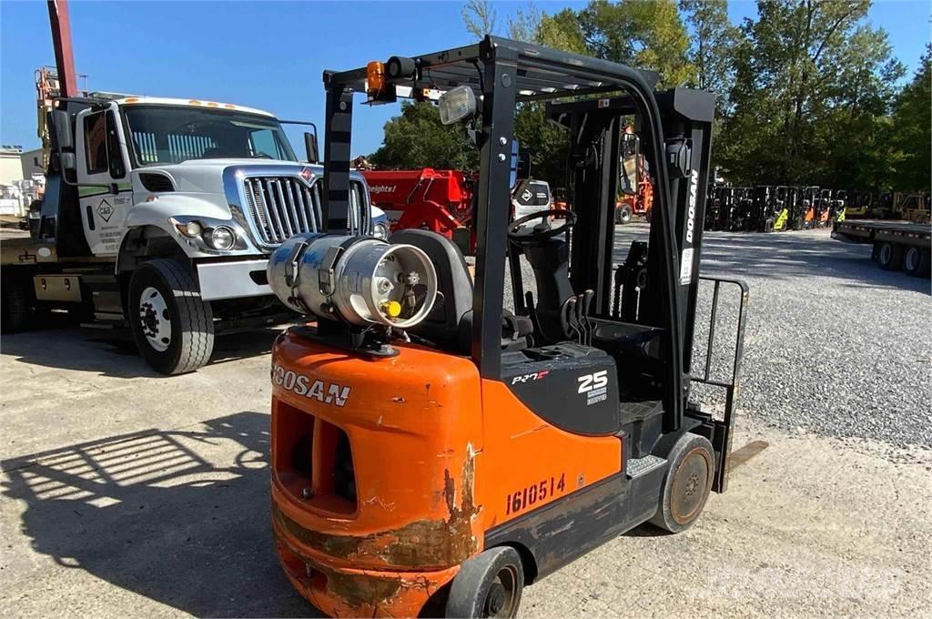 Description: 2018 Doosan GC25P Forklift, 4,283.1 Hrs Showing, Propane, Doosan, Water Cooled Engine, Hydrostatic Transmission, 2WD, Horn, Hydraulic Brakes, 2 Wheel Steering, 21X7X15 Front Tires, 16X5X10 Rear Tires, Pneumatic Tires, Side Shift, 3 Mast Stages, Seat Belt, Standard Lighting Package, Rearview Mirrors, Fork Length: 41