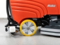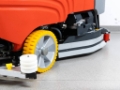 New polyurethane squeegee rubbers, resistant to oil, grease, and petroleum products. New rubber guards around the brush head prevent water from splashing outside the machine's outline.