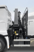 Crane, Air conditioning, Stereo, Cruise control, Cabin suspension - mechanical, Electric windows, Driver seat air-cushioned, Heated seats, Single bunk, Immobiliser, CB radio, Adjustable steering wheel, On board computer, Roof hatch, Headlights washer, Fog lights, Toolbox, Jack, Emergency triangle, Fire extinguisher, Differential lock, Exhaust brake, ABS, ASR, Disc brakes, Auxiliary heating, LED headlights, Ad blue