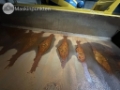 Flat bottom is starting to wear at the rear edge, minor holes occur. No major damage to the bottom