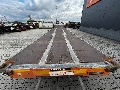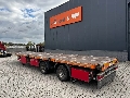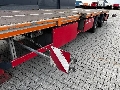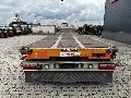 2017 Rufa flatbed galvanized mega-trailer, second axle is steering axle (trailing axle), 12 twist locks for 1x 20FT/30FT/40FT, 1 x 20FT central or 2x 20FT containers (HECKBÜNDIG), 8 stake pockets, 2 x 7 heavy-duty lashing eyes, BPW axles with disc brakes, extendable bumper (78cm), empty weight: 6,320kg, max. mass: 32,000kg, 4 width plates, twin tires with 245/70-R19.5 tires (L: 4/8, 8/6, 5/5mm; R: 9/9, 11/11), German registration with valid SP until 01-2026