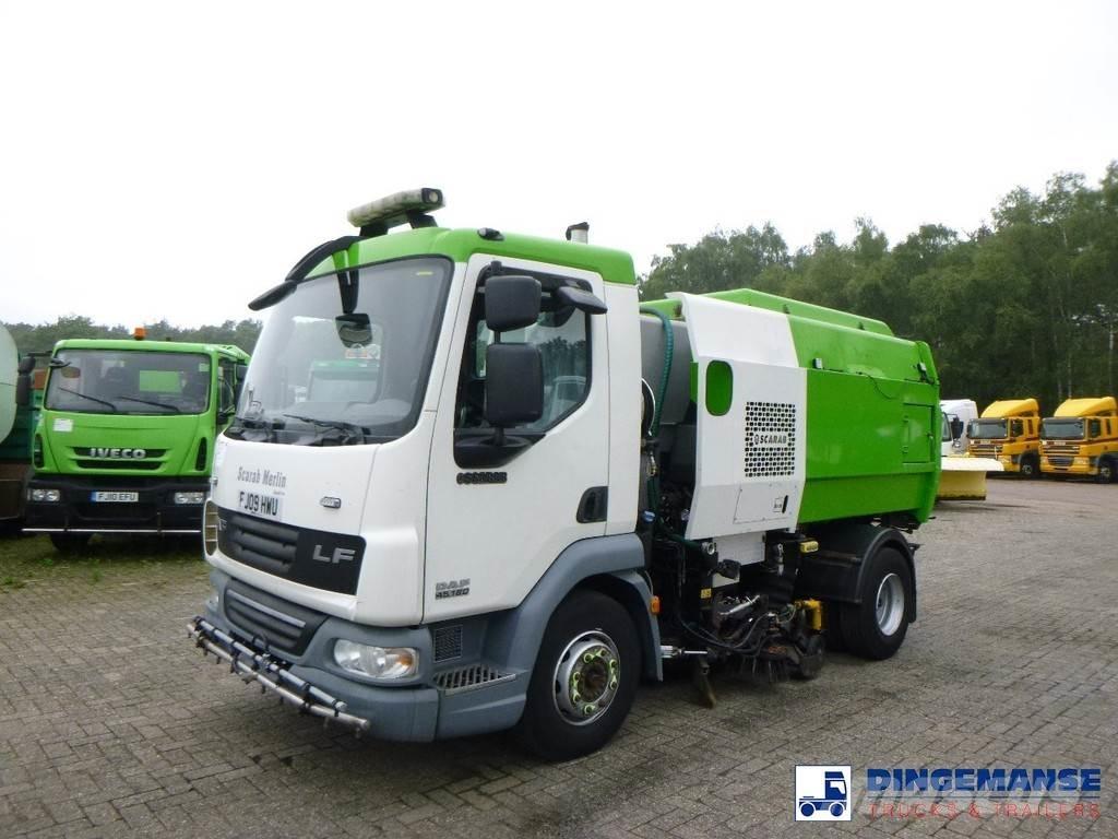 Scarab Merlin street sweeper with tipping hopper, Water tank, Water spray nozzles at the front, Wide sweep brush, Two side sweep brushes, Suction tubes // Truck 4x2, Euro 4, Adblue, Manual gearbox with 6 gears, Full steel suspension, Digital tachograph, Shipment dimensions 580x250x290 cm.