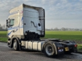 Number of axles: 2, Configuration: 4x2, Own weight: 8250 kg, Gross vehicle weight: 19000 kg, Total fuel capacity: 1400 litre, 2nd fueltank, Fifth wheel height: 108 cm, fifth-wheel: Fixed, Diff. locks: 1, Central lubrication, Suspension type: air suspension, Cabin type: Topline, Cruise control, Tacho, Digital tachograph, Airconditioning, Parking Airco, Parking heater, Electric windows, Radio/cassette, Color: white, Heated mirrors, Lighting type: Halogen lamps, Climatecontrol, Flashing lights, Engine capacity: 324 Kw (434 Hp), Fuel type: diesel, Euro: 5, Gearbox kind: Opti-cruise, Gearbox make: Scania, Number of Gears: 12, Clutch Pedal, Add. break system, Retarder make: Scania, Power steering, ABS, ASR, Starter battery, Seats configuration: 1+1, Seat cover: cloth, Chair adjustment: Manually