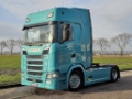 Number of axles: 2, Configuration: 4x2, Total fuel capacity: 1400 litre, 2nd fueltank, Fifth wheel height: 114 cm, fifth-wheel: Fixed, Diff. locks: 1, Suspension type: air suspension, Cabin type: High roof, Cruise control, Tacho, Digital tachograph, Airconditioning, Parking Airco, Parking heater, Electric windows, Electric mirrors, Radio/cassette, GPS navigation, Color: Turquoise, Heated mirrors, Lighting type: Led lamps, Laneassist, Climatecontrol, Seat heating, Bluetooth, Fuel type: diesel, Euro: 6, Gearbox kind: Opti-cruise, Gearbox make: Scania, Number of Gears: 12, Add. break system, Retarder make: Scania, Power steering, ABS, ASR, Starter battery, Central locking, Seats configuration: 1+1, Seat cover: cloth, Chair adjustment: Manually