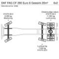 EN: Airconditioning, Air suspension rear, Camera with monitor, Central lubrication, Cruise control, Euro 6, Radio/CD player, Reversing camera, Warning lights